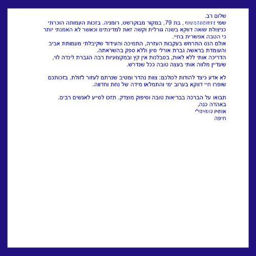 מגן הוקרה לעולה על תרומה ייחודית לחברה, הוענק לעו"ד אביבה סילברמן מייסדת ומנכ"לית העמותה לניצולי השואה אשר עלתה לארץ משוויץ, על ידי שרת העלייה והקליטה סופה לנדבר, באירוע חגיגי לרגל יום העולה בשנת 2017.