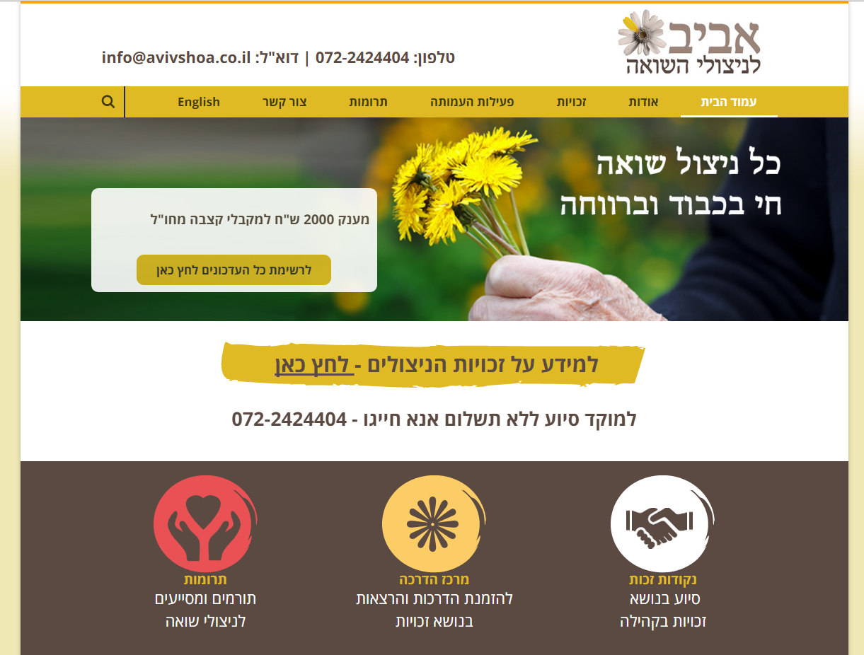 (לשעבר אביב לניצולי השואה)לסיוע במיצוי זכויות ללא תשלום: 5711* | info@aviv.org.il